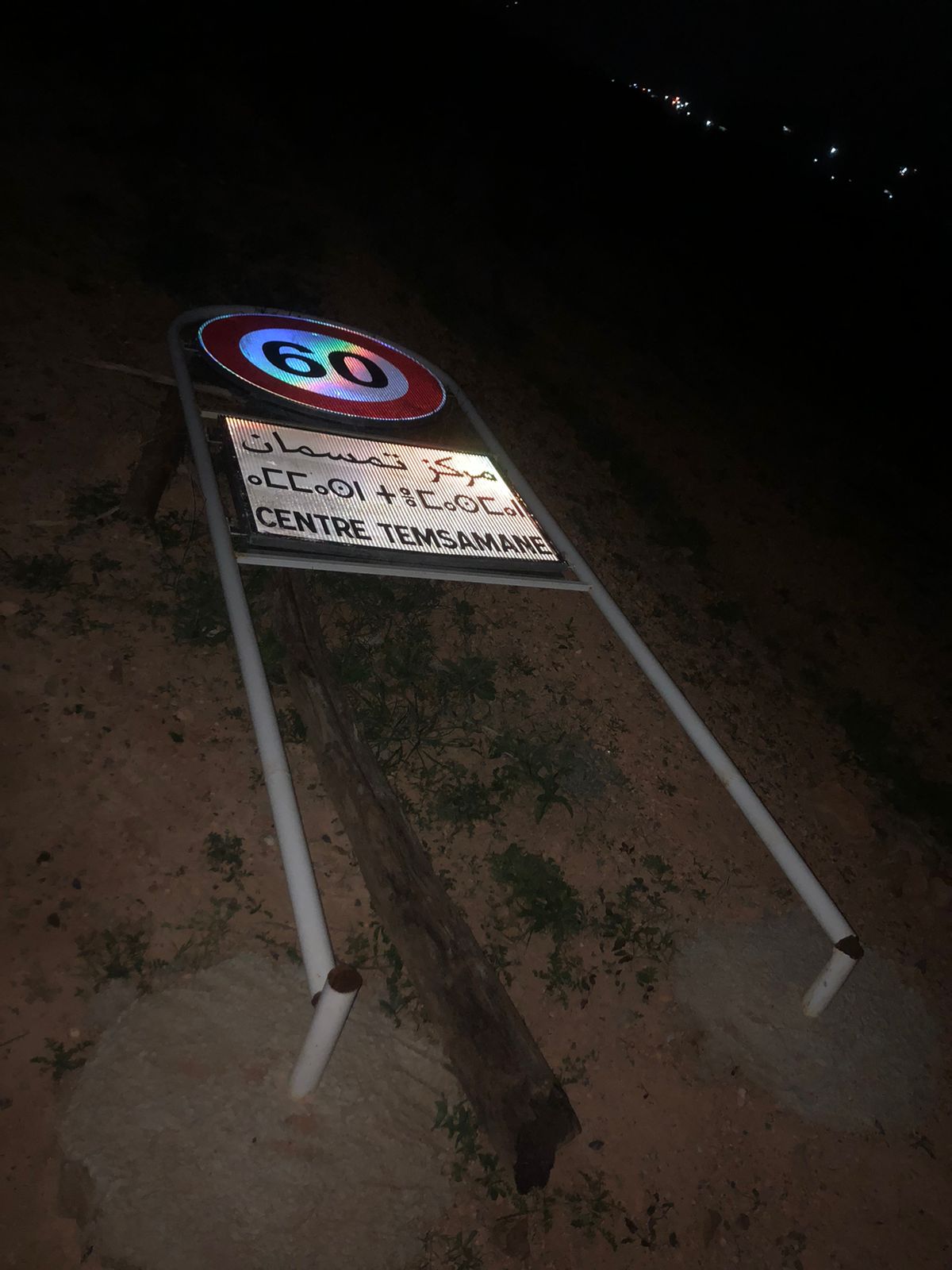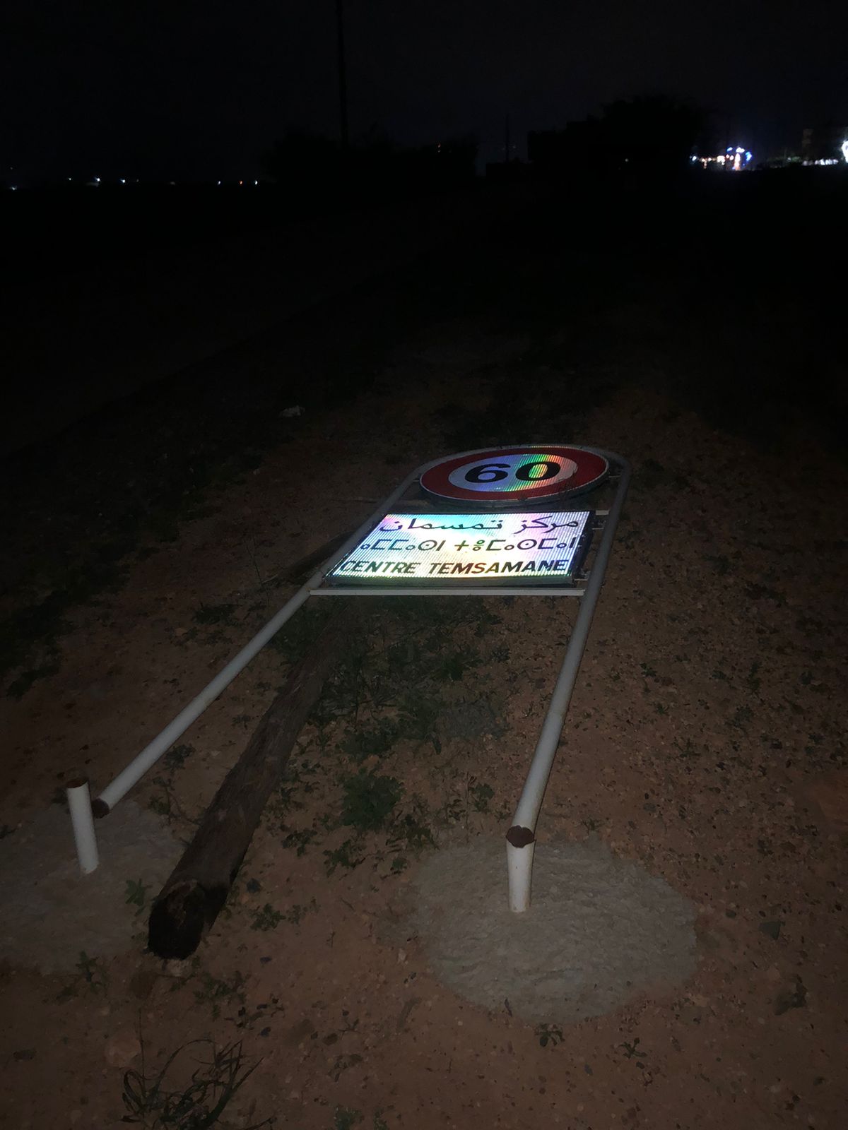 وتُعد هذه اللوحات من ضمن علامات التشوير الخاصة بمداخل التجمعات السكنية، حيث تُنصب لتنبيه مستعملي الطريق إلى دخولهم المجال الحضري وضرورة تخفيض السرعة حفاظًا على سلامة الراجلين ومستعملي الطريق. غير أن الصور المتداولة تُظهر سقوط اللوحة أرضًا، مع ما يبدو أنه اهتراء أو ضعف في الأعمدة الحديدية الحاملة لها.