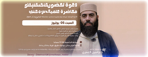 ياسين العمري يؤطر محاضرة بالناظور حول “الأخوة الإيمانية” بدعوة من جمعية ملتقى الذكر والفكر