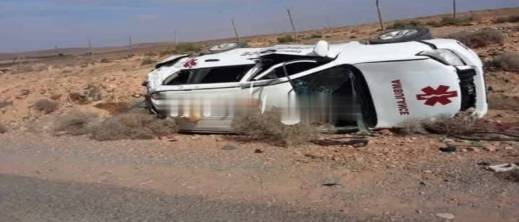 إصابات خطيرة بعد انقلاب سيارة إسعاف تقل امرأة حامل وقابلة